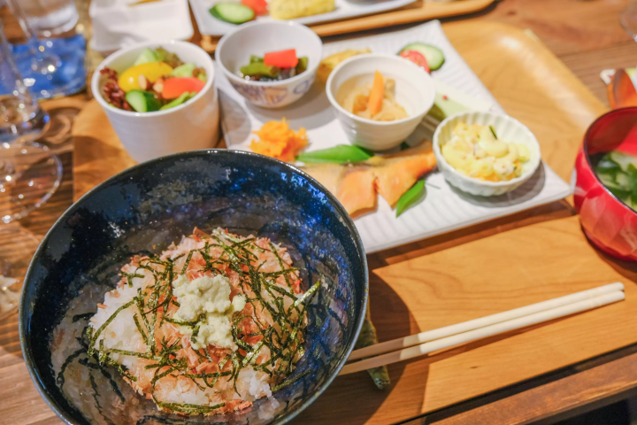 市販のわさびは、主に葉や茎を加工したペースト状のものが一般的で、辛さが際立ちがちですが、この体験ですりおろすのは根茎の上部。ごはんの上に直接わさびをすりおろしていただきます。ツーンとした刺激よりも、舌の上でじんわり広がる甘みと深い旨みに驚くはずです。