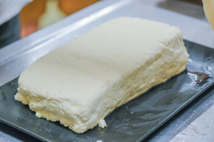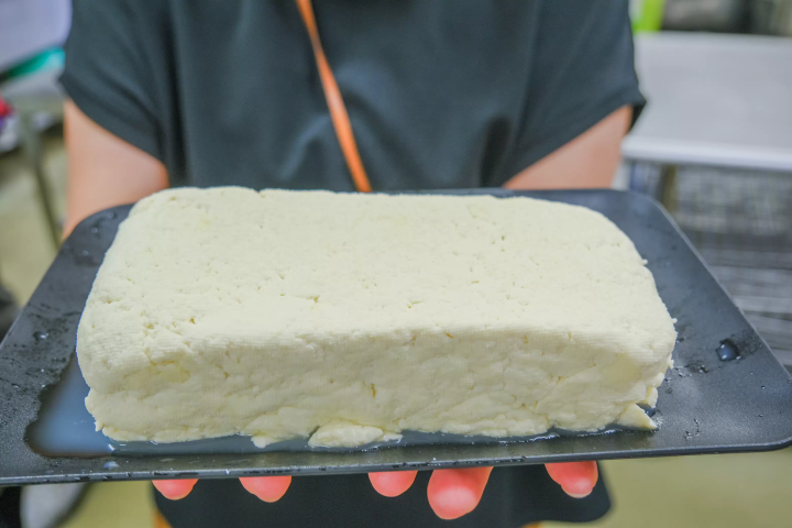 お豆腐が固まったら、専用の型に入れて成形します。この時、自然に固まったものが「絹ごし豆腐」、布に包んで水分を抜いたものが「木綿豆腐」と呼ばれています。