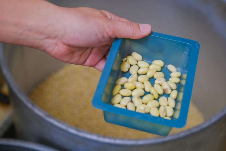 1時間の豆腐作りでは、まず搾りたての豆乳を味わうところからスタート。とろりとした濃厚な豆乳は、まるで飲むお豆腐のよう。口に含むと、大豆の甘みがふわりと広がります。