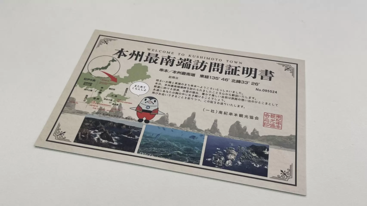 タワー内にはエレベーターが設置されており、どなたも快適に地上から展望台に上がれます。360度に広がる視野で、美しい海の景色や熊野の山並みを楽しむことができます。晴れた日には水平線がはっきり見え、地球の丸さを体感できます。さらになんと、タワーに登ると、「本州最南端訪問証明書」が入手できます!