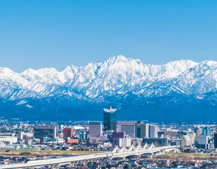 ▲富山・立山連峰と田園地帯画像提供:PIXTA