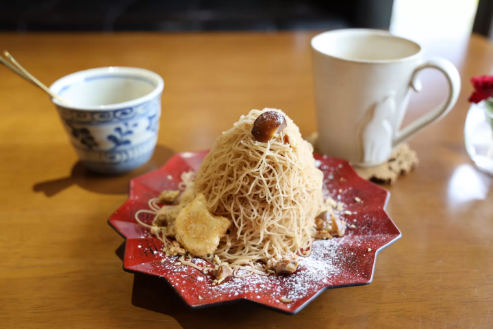 栗クリームと生クリームを使ったマロンシャンティは、栗好きにはたまらない一品です。栗クリームの中にはスポンジケーキが入っていて、ボリューム満点です。栗の素朴な味に生クリームが合わさり、とても美味しかったです。焙煎(ばいせん:コーヒー豆を焼く工程)も行うこだわりのコーヒーが人気と聞き、オリジナルブレンドコーヒーと一緒に味わいました。マロンクリームの甘さとコーヒーの苦みでちょうど良いバランスでした。