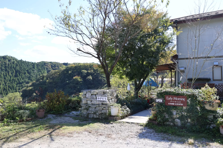 新見市大佐の山の上にある「アーリーモーニング」では、紅茶の茶葉の栽培から手掛けており、そこで育った茶葉でオリジナルブランド「ⓇEIJIMIYAMOTO」の紅茶が味わえます。ランチやティーフードもあり、ゆったりとした自然の中で、本格的な紅茶の時間を楽しむことができます。