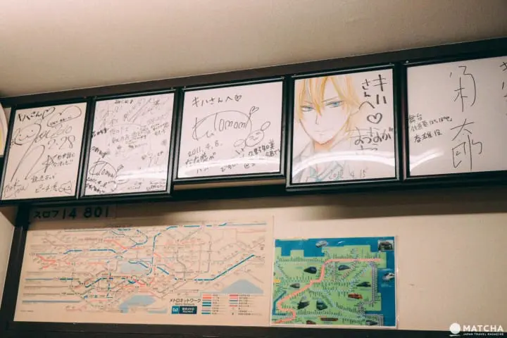 2号車はバーとしてだけでなく、不定期で落語(※1)や演劇のイベントも開催しています。独特の雰囲気から、テレビ番組や映画のロケ地として使われることも多く、壁には多くの有名人のサインが飾られていました。